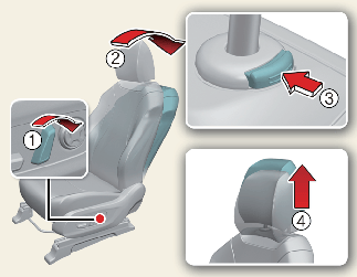 헤드레스트를 앞 방향으로 최대한 이동하면 자동으로 헤드레스트가 뒤 방향으로 이동합니다.