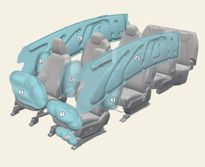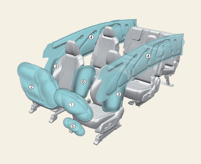 * 실제 차량에 적용된 에어백의 형상과 다를 수 있습니다.