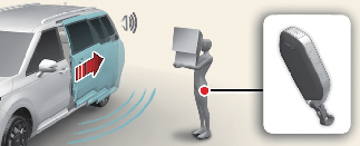 스마트키를 휴대하고 스마트 파워 슬라이딩 도어 감지 영역 약 30~60 cm 이내에 접근하면 약 3초간 비상 경고등 및 경고음이 작동합니다.