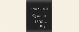 잔여 주행 거리 1,500 km 또는 잔여 기간 30일 시점부터는 시동 「ON」 시마다 서비스 알림 정보가 LCD 표시창에 자동으로 수 초 동안 표시됩니다.