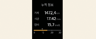 주행 거리/연비/시간 초기화 시점부터 현재까지의 누적 정보를 표시합니다.