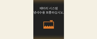 하이브리드 시스템 관련 하드웨어를 보호하는 냉각수가 부족할 경우 표시됩니다. 경고문이 표시되면 주행을 중지하고 냉각수량을 확인하시기 바랍니다. 장시간 냉각수가 부족한 상태에서 주행하면 하이브리드 시스템에 심각한 영향을 줄 수 있으며, 주행이 불가한 상태가 될 수 있습니다.
