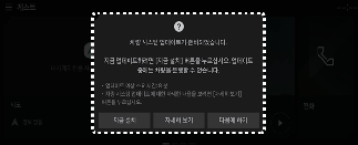 시동을 걸고 주행할 수 없습니다. 업데이트를 위한 충분한 시간을 확보하고, 안전한 장소에 주차한 후에 업데이트를 진행하십시오.