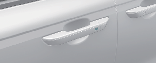(터치센서 타입의 경우) 앞좌석 실외 도어 손잡이에 있는 음각 부분으로 된 도어 잠금 센서부를 약 1초동안 터치하십시오.
