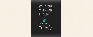 언덕길에서 차량 정차 시, 브레이크 또는 주차 브레이크를 사용하십시오.