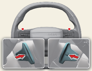 왼쪽 패들 쉬프트 레버(-)를 한 번 당길 때마다 회생 제동량이 1단계씩 상승하면서 차량 감속도가 커지고, 오른쪽 패들 쉬프트 레버(+)를 한 번 당길 때마다 회생 제동량이 1단계씩 내려가면서 차량 감속도가 작아집니다.