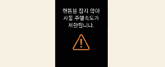 일정 시간 동안 스티어링 휠을 잡지 않으면 단계적으로 핸즈오프 경고문이 표시되고 경고음이 울립니다.