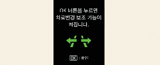 기능이 취소되면 주행 상황에 따라 기존 차로의 중앙으로 돌아오거나 조향 보조가 중지될 수 있습니다. 주의하여 운전하십시오.