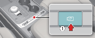 「P」(주차), 「D」(주행) 또는 「N」(중립) 위치에서 주차/뷰 버튼(1)을 눌러 후방 모니터를 켜거나 끌 수 있습니다.