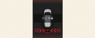 긴급 제동으로 정차 시 클러스터 등에 경고문이 표시됩니다. 안전을 위해 즉시 브레이크 페달을 밟고 주변 상황을 확인하십시오.
