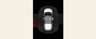 충돌방지 보조에 의한 정차 시 클러스터 등에 경고문이 표시됩니다. 안전을 위해 즉시 브레이크 페달을 밟고 주변 상황을 확인하십시오.
