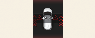 실외 미러(사이드 미러) 경고등이 깜빡이고 경고문과 경고음을 통해 충돌 경고를 알립니다.