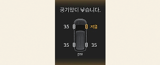 개별 저압 타이어 위치 및 공기압 표시