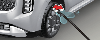 실런트(봉합제)를 사용하여 펑크 난 타이어를 수리했을 시, 타이어 공기압 감지 센서와 휠에 묻은 실런트(봉합제)를 제거해야 합니다. 자사 직영 서비스센터 또는 서비스협력사에서 점검을 받으십시오.