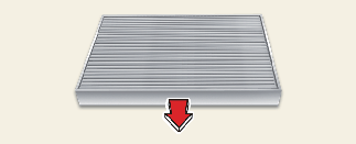 공조 장치용 에어필터 교체 시 받침대 및 필터의 방향이 화살표 표시(↓)가 아래로 향하도록 장착하십시오.