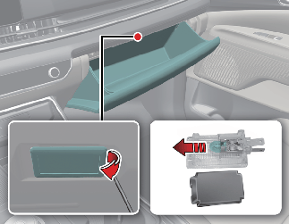 테일게이트 안쪽에 있는 서비스 커버를 (-)자 드라이버를 이용하여 분리하십시오.