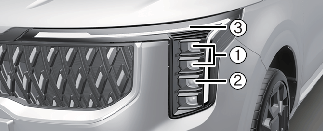LED 타입의 전조등(상향, 하향)(1, 2), 주간주행등(3)이 켜지지 않을 경우에는 가까운 자사 직영 서비스센터 또는 서비스협력사에서 점검을 받으십시오.