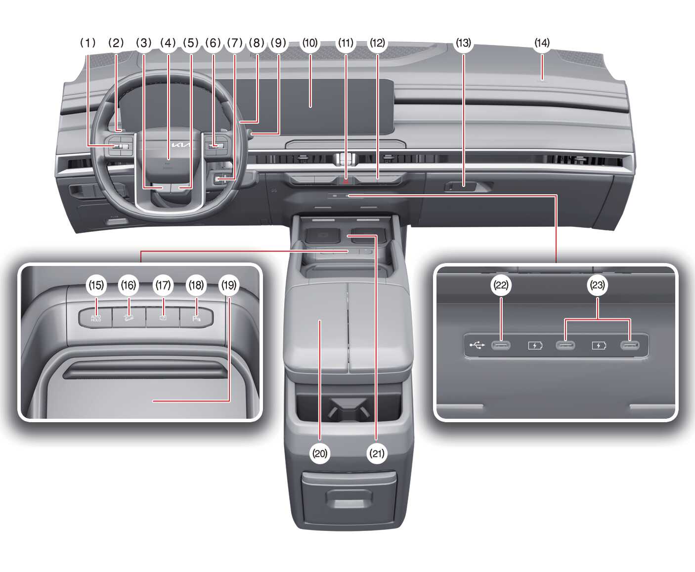 The actual shape of your Kia may differ from the illustration.