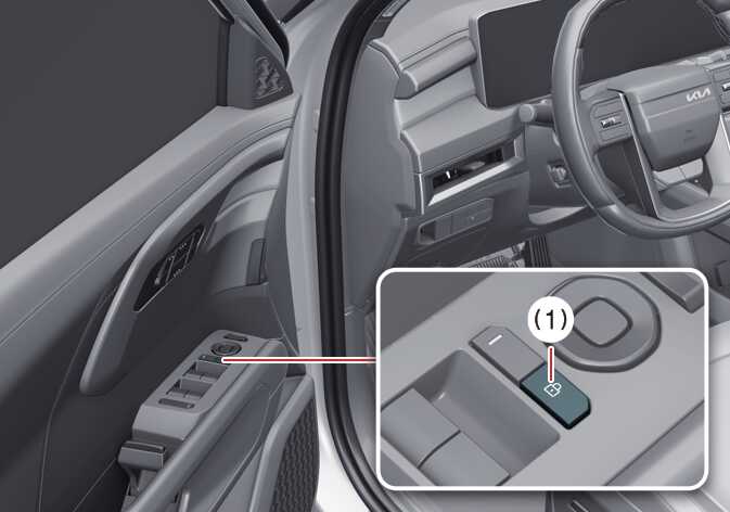 If you lock the door with the central door lock button (1), all vehicle doors will lock automatically.