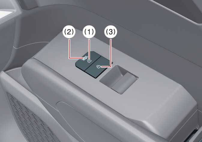 To lock all vehicle doors, press the central door lock button (3) on the driver and passenger side.