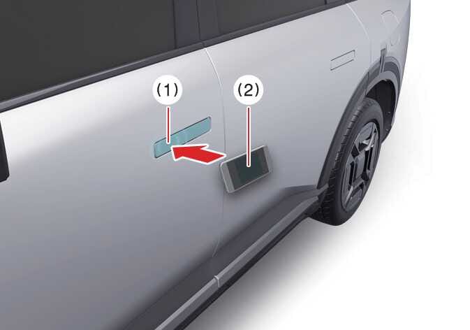 For smartphones without UWB support:To lock or unlock the doors with a registered smartphone, touch the NFC antenna on the smartphone on the authentication pad of the driver’s or passenger’s outside door handle for about 2 seconds.