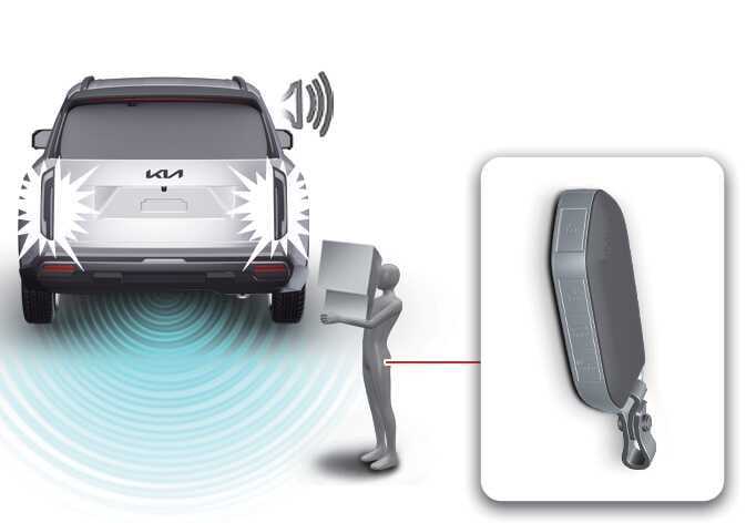 OLQ2A045027If you are positioned in the detecting area (20–40 in [50–100 cm] behind the vehicle) while carrying a smart key, the hazard warning lights will blink and the chime will sound to alert you that the smart key has been detected. The liftgate will open.