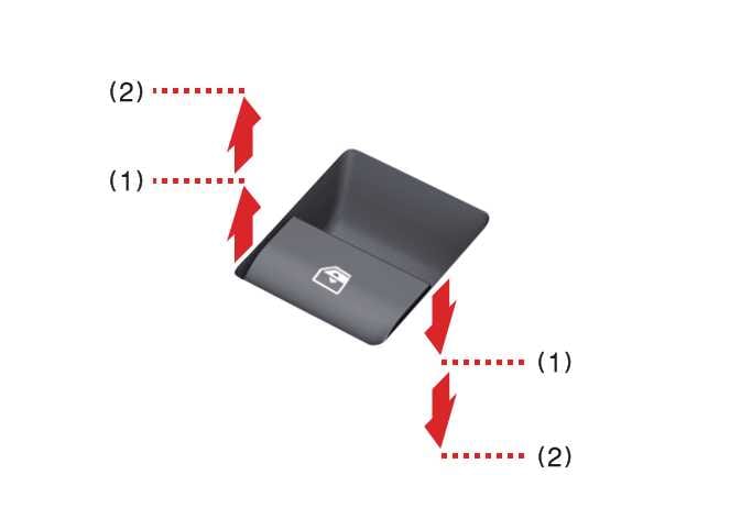 To open or close a window, press down or pull up the front portion of the corresponding switch to the first detent position (1).
