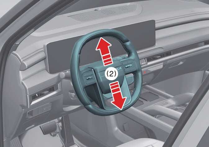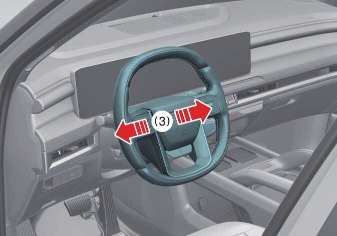 Adjust the steering wheel to the desired angle (2) and distance forward or back (3).