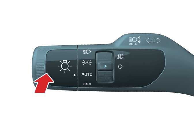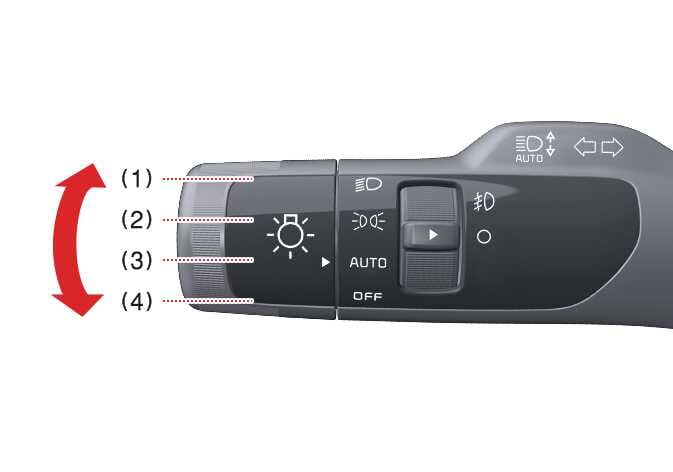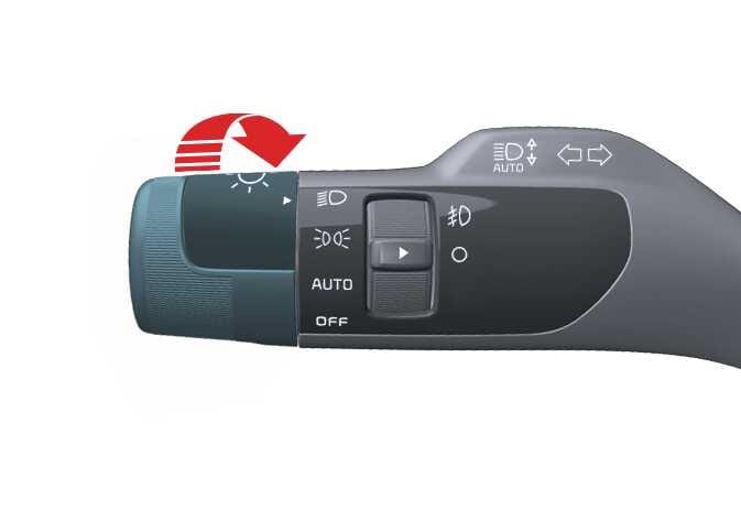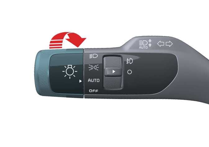 To operate the lights, turn the knob at the end of the control lever to one of the following settings: