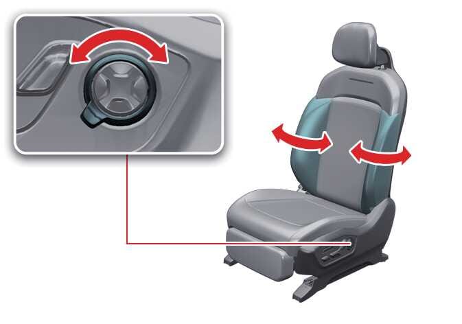 Turn the seat bolster adjustment switch clockwise and the seatback bolster will be tightened.