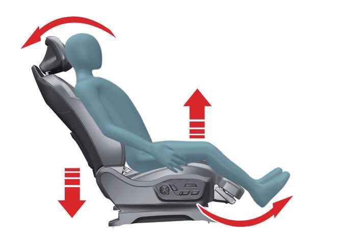 As the risk of injury may increase in the event of a collision with the relaxation comfort seat is being operated, use it only when parked/stopped or while resting.