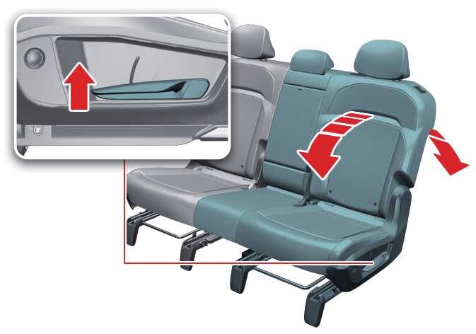 - Lift the seatback recliner lever (for 2nd row) or strap (for 3rd row).