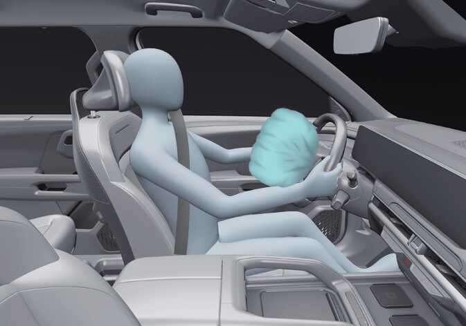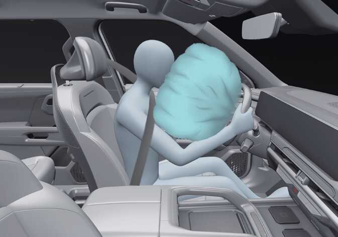 A fully inflated air bag, in combination with a properly worn seat belt, slows the driver’s or the passenger’s forward motion, reducing the risk of contact with the steering wheel or instrument panel and distributing the force more evenly over the body. After complete inflation, the air bag immediately starts deflating, enabling the driver to maintain forward visibility and the ability to steer or operate other controls.