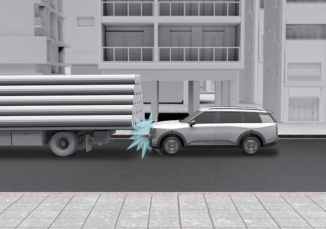 OLQ2A065057Just before impact, drivers often brake heavily. Such heavy braking lowers the front portion of the vehicle causing it to “ride” under a vehicle with a higher ground clearance. Air bags may not inflate in this situation because deceleration forces that are detected by sensors may be significantly reduced by such “under-ride” collisions.