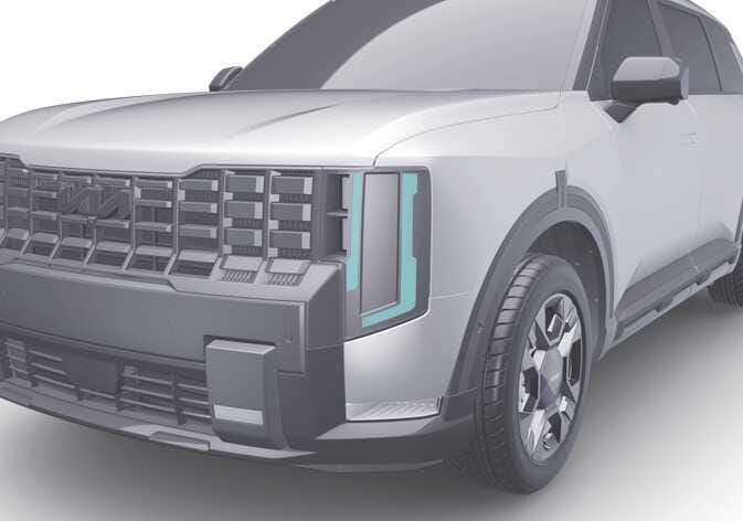 The lighting pattern function projects various patterns in front of and rear of the vehicle.