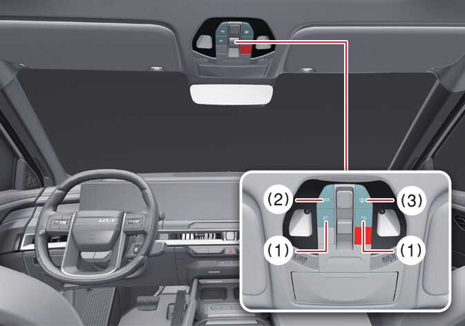 : If you press the button at each location, the map lamp of the corresponding location turns on, and if you press it again, the lamp turns off.If you press and hold the corresponding button for about 1.5 seconds or more while the lamp is on, the brightness of the left and right map lamps changes, and if you release the button at the desired brightness, the set brightness is saved.