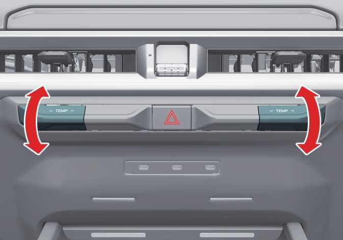Press the temperature control lever on the front climate control panel to set the desired temperature.