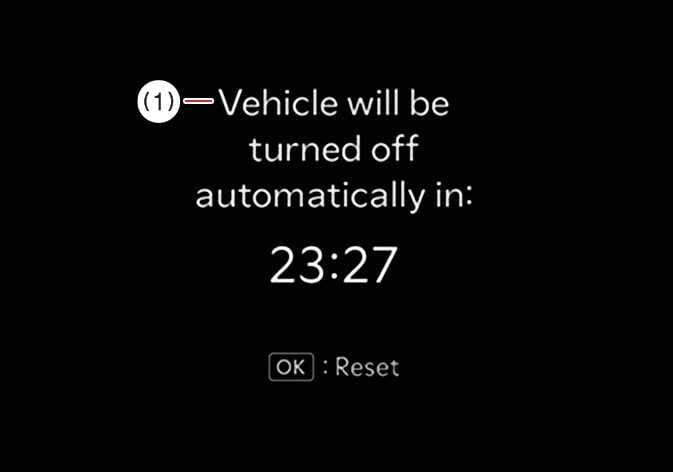When approximately 10 minutes remain on the Auto-Shut Off timer, a warning message appears on the instrument cluster. The remaining time is shown on the display. Press the OK button on the steering wheel to reset the Auto-Shut Off timer.