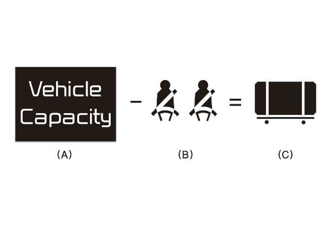 - Subtract the combined weight of the driver and passengers from XXX kg or XXX lbs.