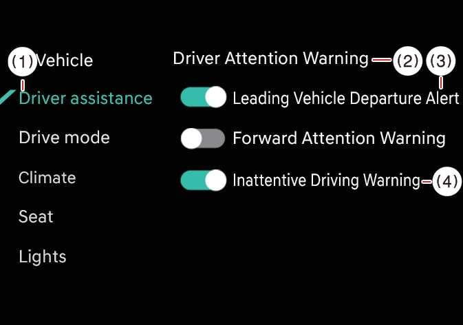 Inattentive Driving Warning: Inattentive Driving Warning of DAW can be turned on or off.