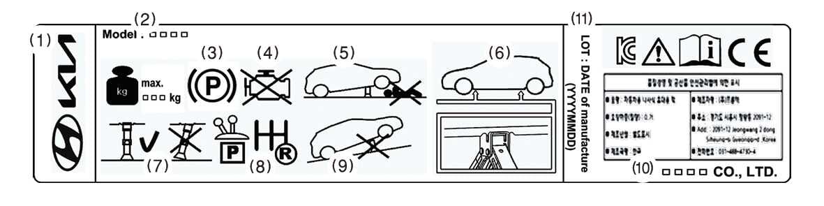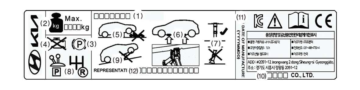 The actual jack label in your vehicle may differ from the illustration above. Refer to the jack label in your vehicle for these specifications: