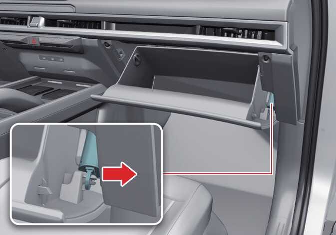 - Open the glove box and remove the glove box damper from the stopper on the right side.