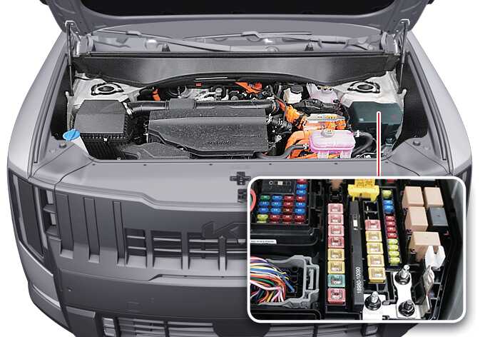 After you check the engine compartment fuse panel, securely install the fuse panel cover (make sure you hear the audible click sound). If you do not securely install the fuse panel cover, electrical failures may occur due to contact with water.