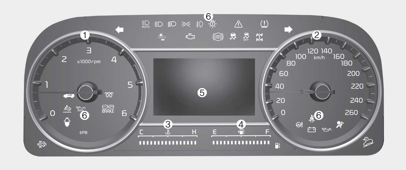 자세한 내용은 실 차량에 적용된 계기판과 뒷장 설명 부분을 참조하십시오.