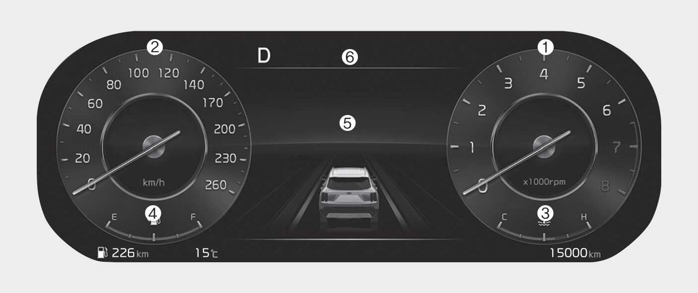 예시된 계기판 형상과 LCD화면의 내용은 실제 차량의 형상 및 내용과 상이할 수 있습니다.