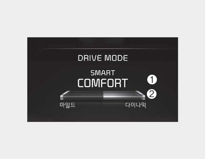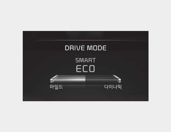 운전자 성향 게이지가 마일드 방향으로 채워지고 일정 시간이 지나면 자동으로 SMART ECO 모드가 작동하며, 운전자 성향 게이지가 우측으로 채워지면 다이나믹한 운전 조건이 감지되어 SMART SPORT 모드가 작동합니다.