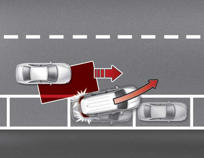 전방의 차선을 인식하여 차로변경 시 후측방에서 다가오는 차량과의 충돌 위험이 판단되면 차량을 편제동 제어하여 충돌 회피를 도와줍니다.