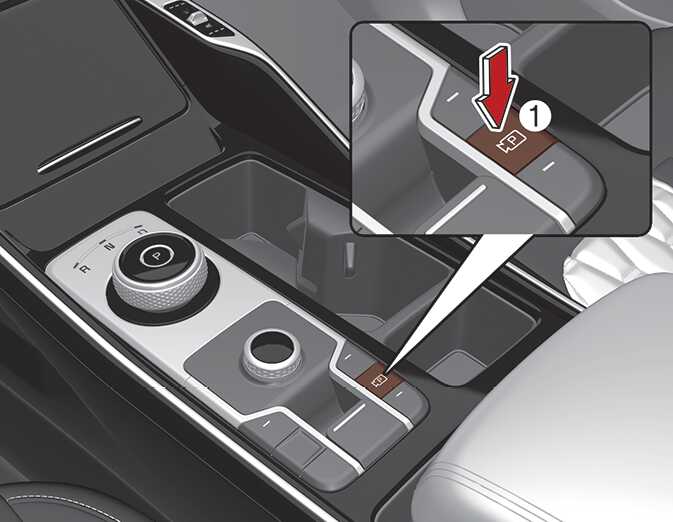 「D」(주행) 또는「N」(중립) 변속 위치에서 버튼(1) 누름