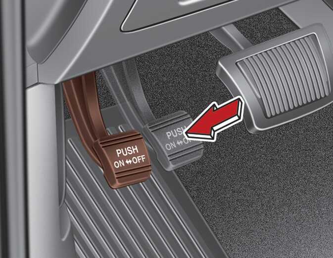 - 차를 멈추고 브레이크 페달을 밟은 상태에서 주차 브레이크 페달을 끝까지 밟으십시오.