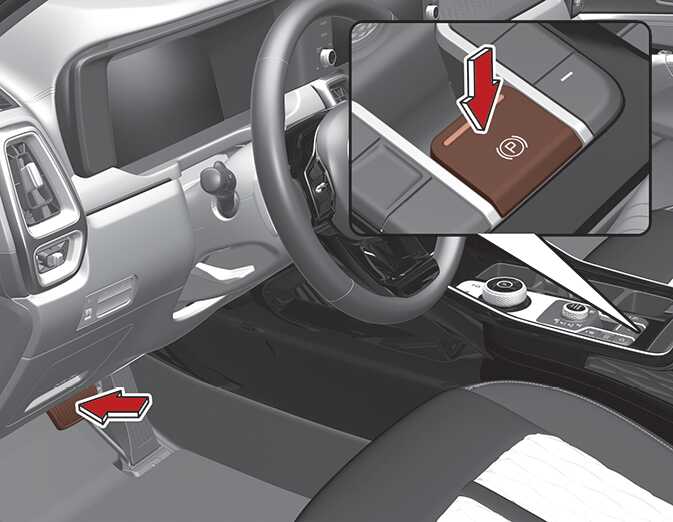 브레이크를 밟고 전자식 파킹 브레이크(EPB) 스위치를 눌러 해제할 수 있습니다. 단 다음의 모든 조건이 만족되는 경우에 해제가 가능합니다.